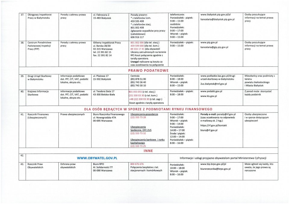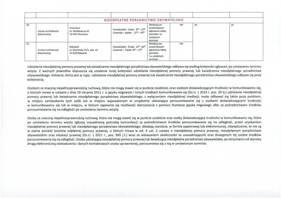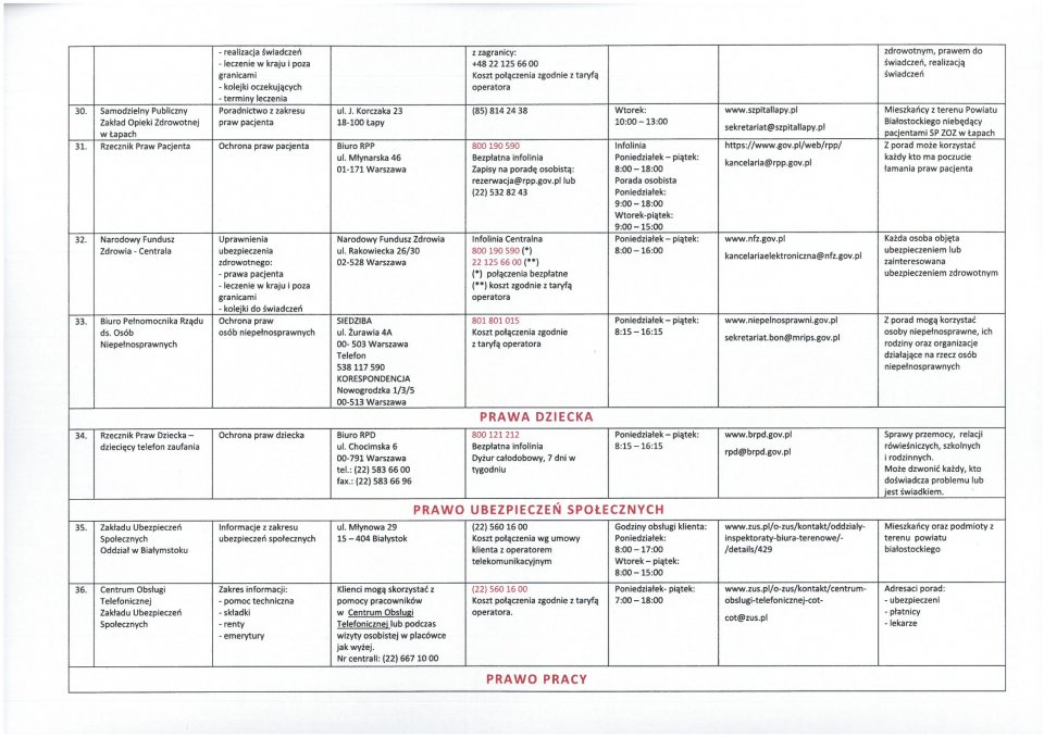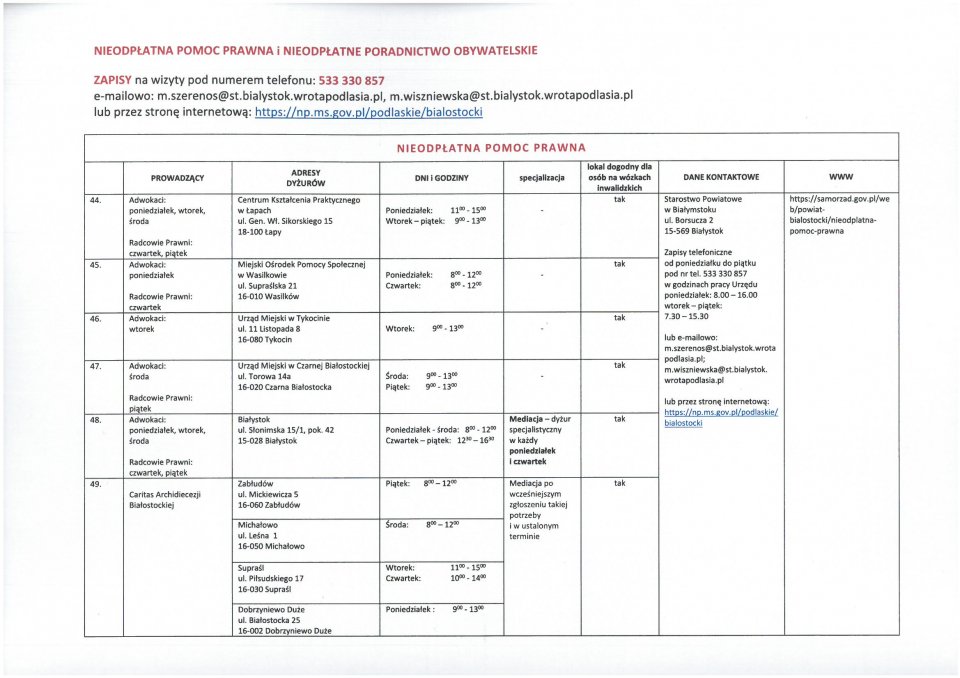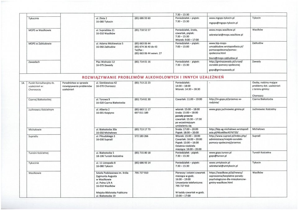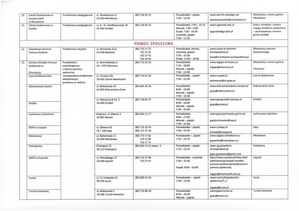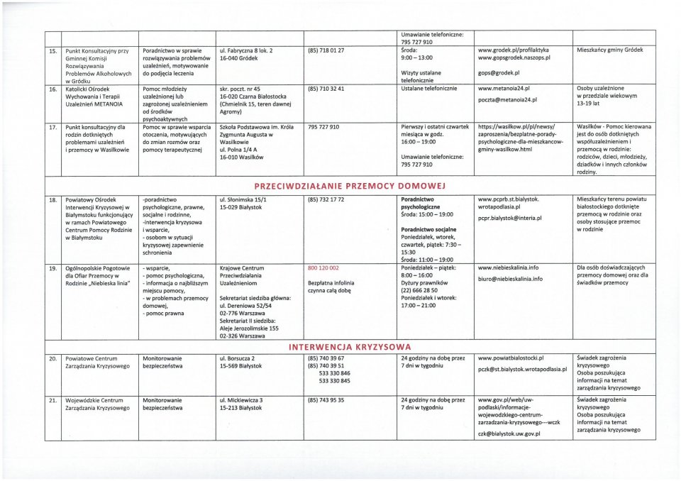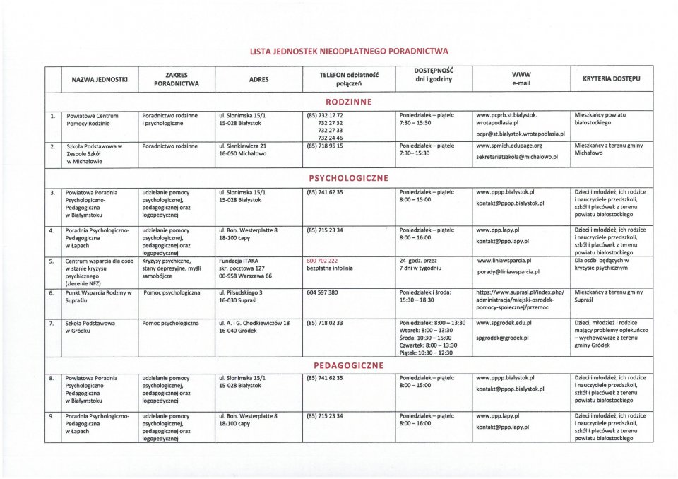 Nieodpłatne Jednostki Poradnictwa Specialistycznego na ternie Powiatu Białostockiego