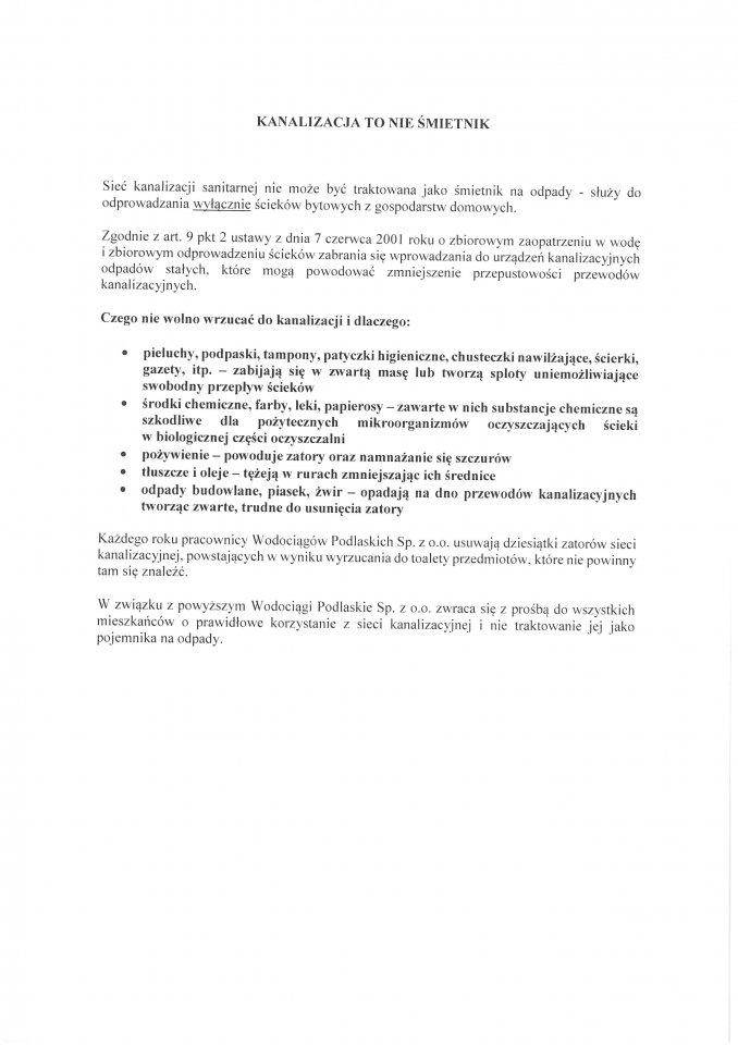 po raz kolejeny przypominamy Kanalizacja to nie śmietnik