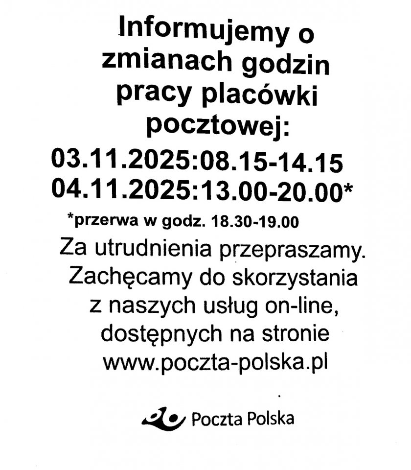 Poczta Suraż zmiana godzin pracy - INFORMACJA